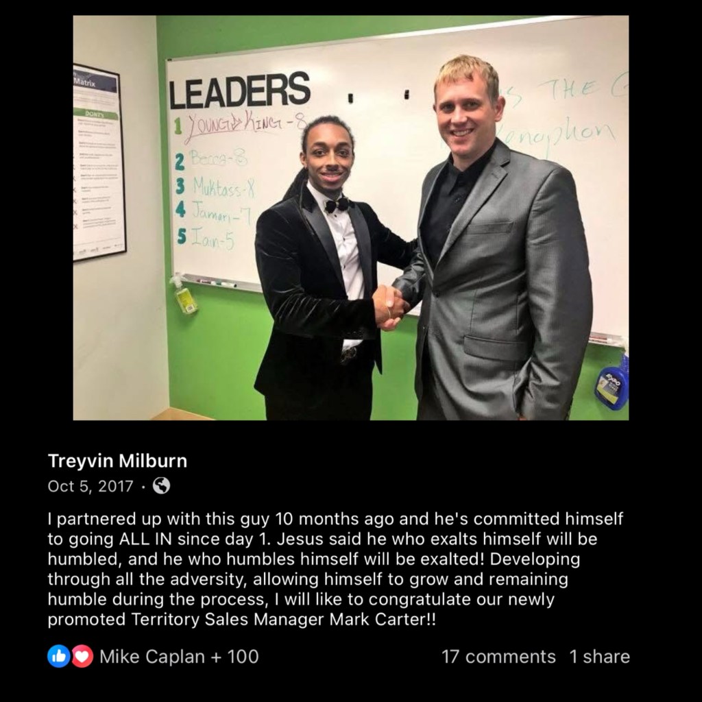 Last week, I sponsored a man named Mark Carter into my insurance business. We met while we were both working at a company called Just Energy, while we were both working in the Management Consulting industry.