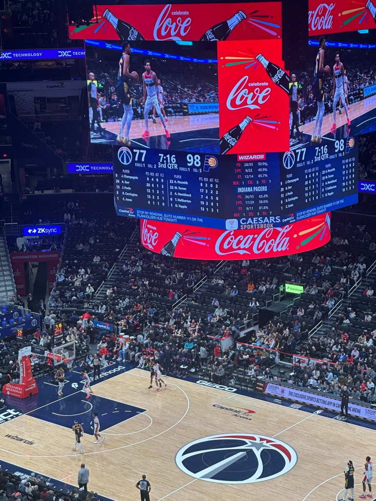 As far as the basketball game itself, it was my first actual NBA game, so naturally my team would get annihilated. The Washington Wizards are “tanking” and are usually one of, if not the worst teams in the league. They ended the 2024-25 season with a 18-64 (.220) record, That being said, after living in Baltimore for so long, it felt wrong to not support my local team, especially since I’m genuinely a fan of basketball.