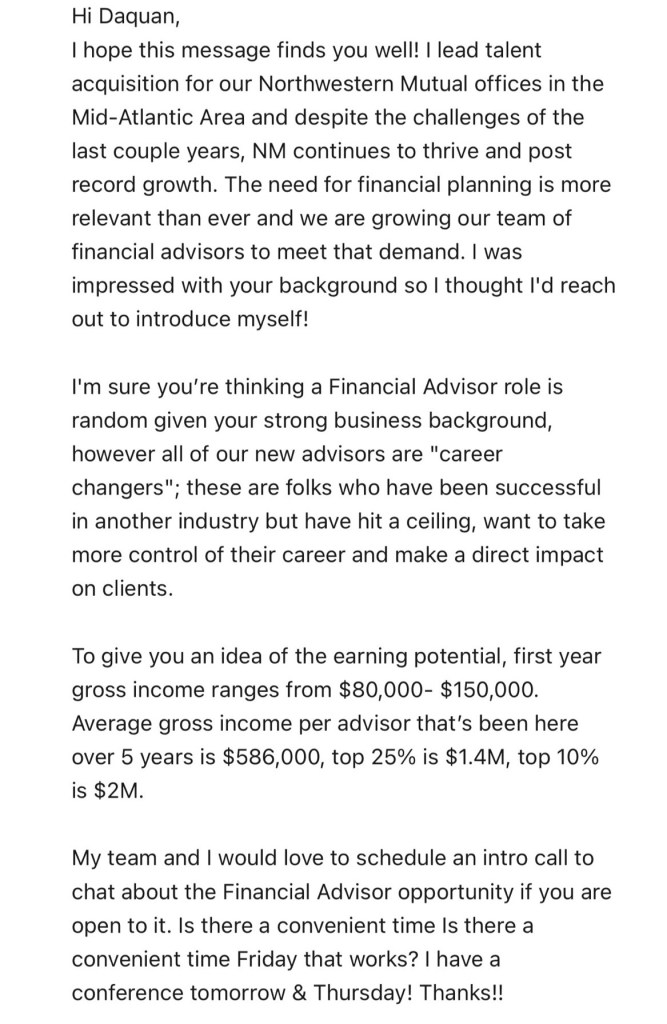 I had a business meal and checked out two office spaces, before realizing my current career trajectory.